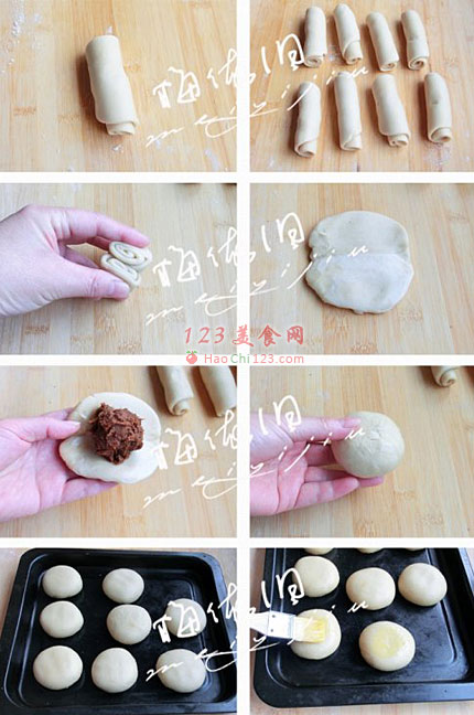 9、入烤盘,刷蛋液。预热烤箱,180度烘烤25分钟。