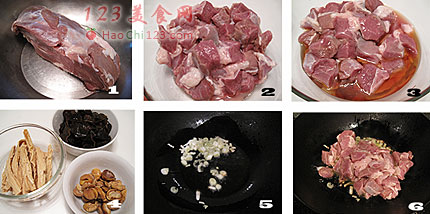 4、干木耳和腐竹提前泡发,去除杂质,切成小块。板栗去壳备用。