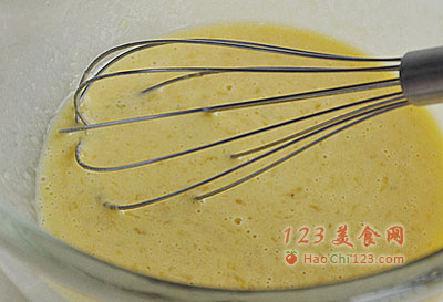 3、加入鸡蛋、牛奶、一点点盐(1-2g),拌匀。因为香蕉有甜味,所以不用加糖,最后做好的松饼也会有淡淡的甜味,而加一点点盐可以突出香蕉的甜味。