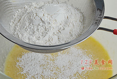 4、筛入面粉。
