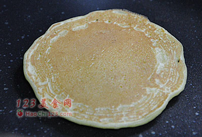 7、待面糊凝固、表面出现小气泡,翻个面。