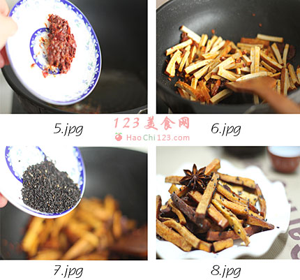 贴士:1、这个菜我没有放盐,因为郫县豆瓣是咸的,豆干也微咸,口重的同学可以适当放些盐。
