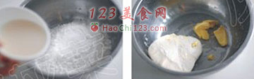 2、锅烧热,放入2汤匙橄榄油(或者黄油、或者其他食用油),放入洋葱碎和大蒜碎炒香。