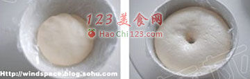 4、手指沾干面粉,戳一个洞,不塌陷不回缩就是发好了。