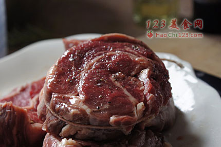 2、牛排要选厚度高的,两厘米厚。如果是薄牛排,煎制时间响应缩短。全熟的牛排很干硬,口感不好。