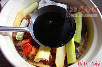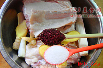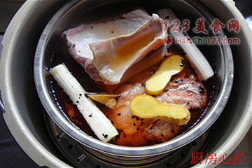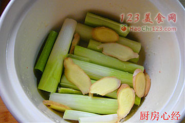 7、砂锅底部碼满葱姜垫底,避免糊锅。