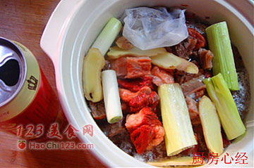 10、补足清水超过肉块2厘米,可以适当加盐,就不用再加任何调料了。