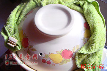 11、上汽后,给砂锅围上湿布,避免跑很多的热气,小火1-2个小时。我焖了二个小时。