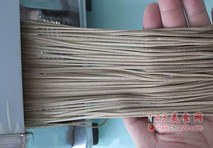 8、转到出面档,放入刚才碾压好的面皮,面条就出来了。