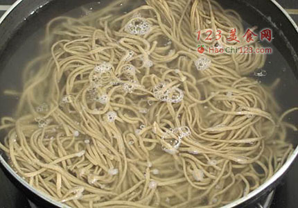 12、将煮好的面条放入过滤的水里过凉,优质的过滤水过凉的面条口感更劲道。