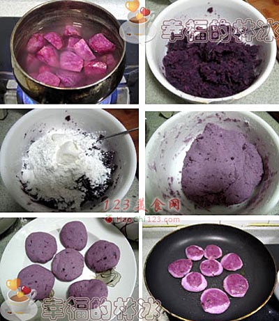 贴士:1、紫薯可以换成蒸的,我煮的水份会大一些,糯米粉的量要增加。