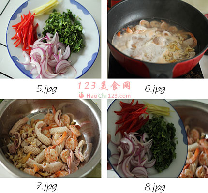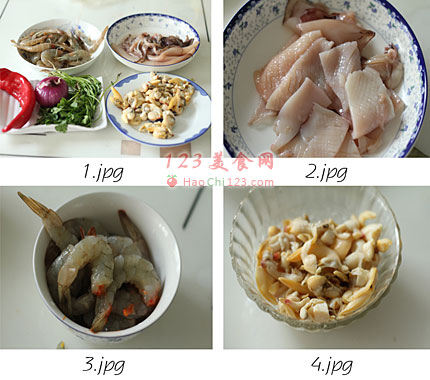2、海鲜不要焯烫过火,不然就不鲜嫩了,尤其是蛤蜊肉。