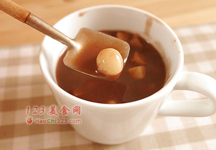 4、关火前用糯米粉做些小圆子加进去煮熟就好了。