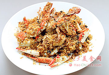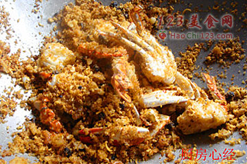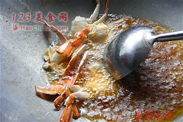 11、倒入炸好的蟹块,翻炒均匀即可出锅。