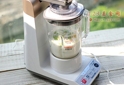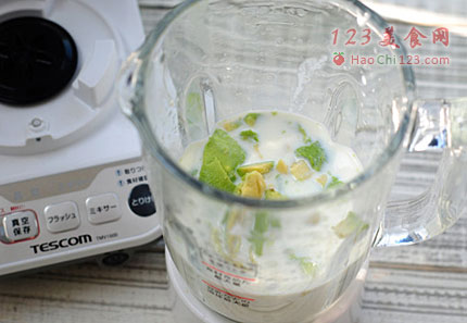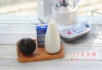 3、将牛奶、酸奶、切块的牛油果一起放入真空料理机中。