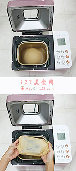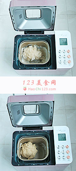 贴士:1、面团的揉制状态是面包组织是否松软的关键,中途还是偷偷打开面包机检视的面团的情况。