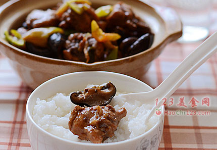 5、蒸好大米饭配上焖鸡块即是黄焖鸡米饭套餐。