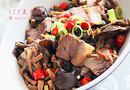 贴士:干豆角:久浸泡、慢蒸煮;黑木耳:沥干水、后入锅;五花方肉:少翻炒、快出锅。[sushi.laoyanhuo.com]