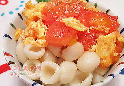6、做好的番茄鸡蛋卤浇在煮好的酒窝面上即可。