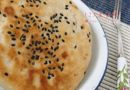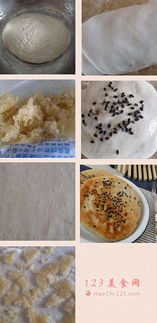 8、将做好的糖饼放到饼铛中,两面烙成金黄色即可(如果用平底锅的话就开小火慢慢烙,一定确保里面也要熟透)。[sushi.laoyanhuo.com]