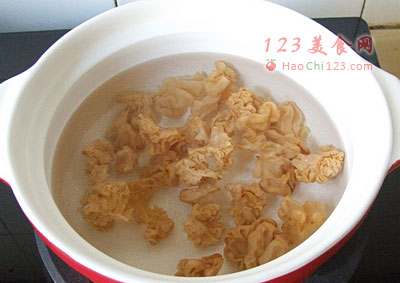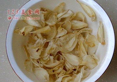 2、干百合清洗之后,用温水浸泡至软,捞出。