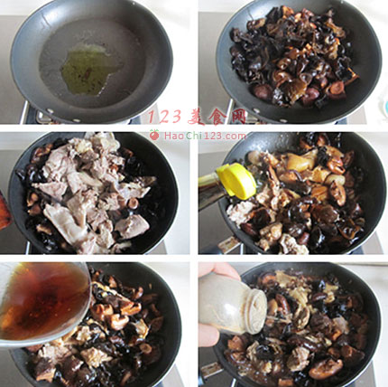 2、香菇、黑木耳提前泡发,泡过香菇的水不要泼了,炖肉时可以用。