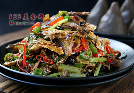3、火焙鱼,是湖南的一道名菜。将从河里捞上来的小鱼去掉肉脏,放入铁锅子里用小火焙干,待放晾后,再用谷壳、木屑等薰焙而成。