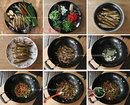 2、步骤5炒火不要太大,以免容易烧焦,要将火焙鱼炒香酥,这样口感才好。