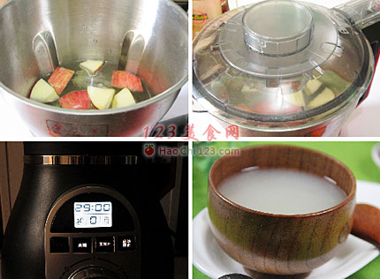 4、将切好的苹果和马蹄加入破壁机不锈钢桶内。