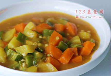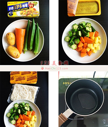 7、把乌冬烫熟后盛进碗里,随自己喜欢舀上适当分量的咖喱杂蔬。