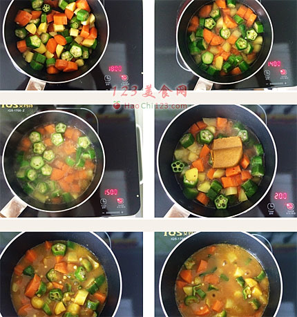 5、把好侍百梦多辣味咖喱放进锅里融化。