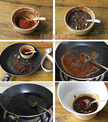 3、再说熬制,酱油中先放入五香粉。