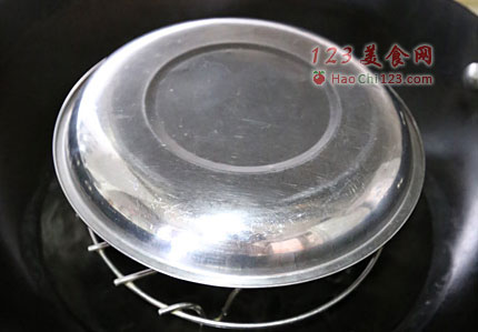 4、盖上盖子后,由于碗比较深,用最小火炖20分钟(用锅蒸蛋一定要用盖子,否则锅子里的倒汗水会流进去影响口感)。