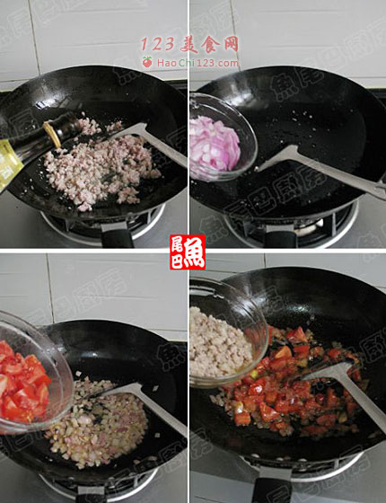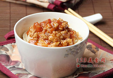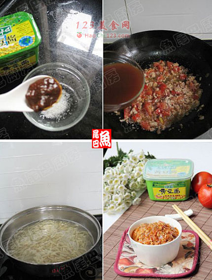 12、夹出,再浇上一勺香喷喷的番茄肉酱,拌匀即可开吃。