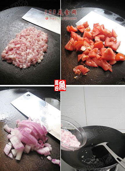 2、番茄洗净切丁。