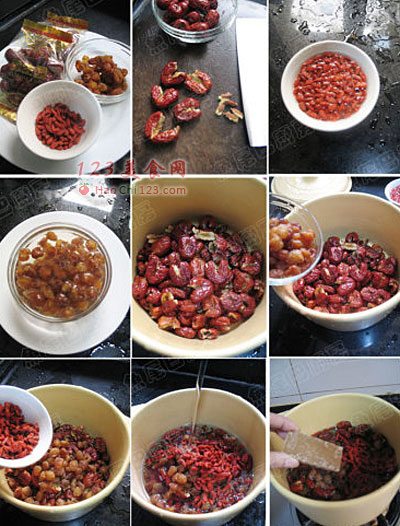 8、加入没过红枣、桂圆的水。