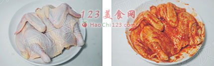 2、将奥尔良腌料均匀涂抹鸡全身腌24小时。
