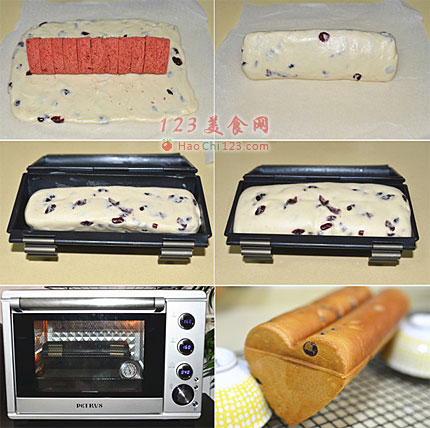 21、将模具上的锁扣扣好,放入预热好160度的烤箱下层,上下火烤35分钟即可。