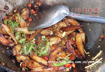 4、放入炸好的鸡翅和尖椒翻炒均匀,出锅即可。