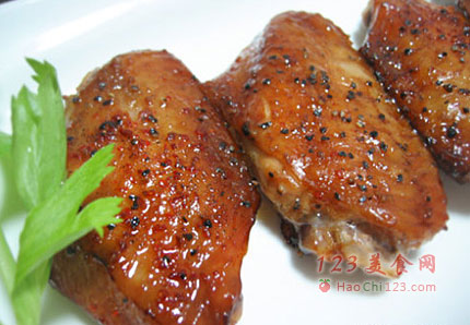 8、烤好的鸡翅,吃之前撒适量黑胡椒碎,味道更佳。
