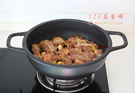 3、大蒜在长时间炖煮后会变得软烂,影响卖相,所以在煎好牛尾之后要将大蒜捡出来。[sushi.laoyanhuo.com]