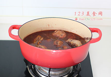 8、90分钟后,调入盐,继续炖30分钟,然后转大火稍稍收一下汁至汤汁浓稠即可。