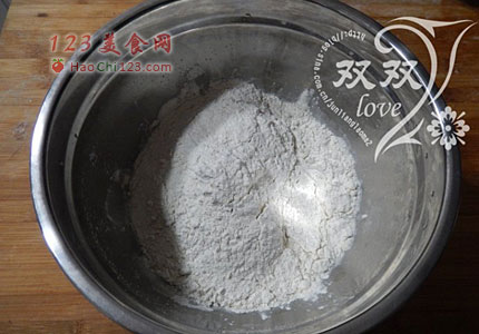 2、加入面粉(如果我不特意说明,面粉用的就是中筋面粉,适合做馒头包子的。面包用的是高筋面粉,饼干和蛋糕用的是低筋面粉)。