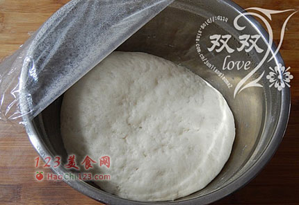 4、揉成团,放入盆内,盖保鲜膜,静置温暖处,发酵至2倍大。