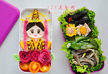 10、所有的米饭和菜等放入便当盒。