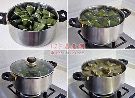 9、将全部包好的粽子紧挨着摆入锅中,粽子间不要留有距离。