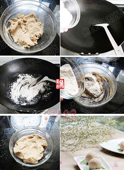 3、面粉的用量,要根据拌入食用油后栗蓉的稀稠度来定,慢慢加,不要一下子都倒进去,边倒边揉搓,感觉能揉成形就行了。[sushi.laoyanhuo.com]