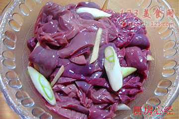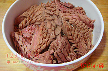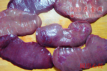 2、首先要撕去腰花外面的薄膜,然后冲洗干净后,由腰子的中间片开,踢去腰子的腰臊部分,不要留一点腰臊。