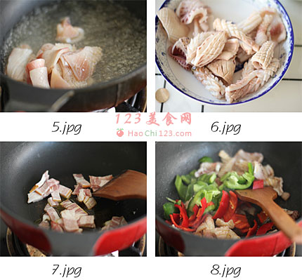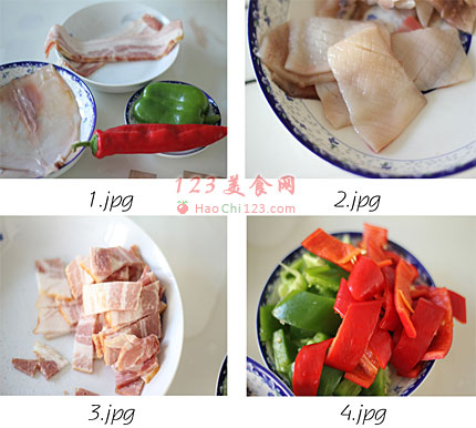 4、青红椒切块。