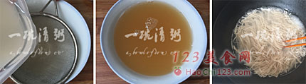 4、把冷却好的牛肉汤用筛子过滤一遍。